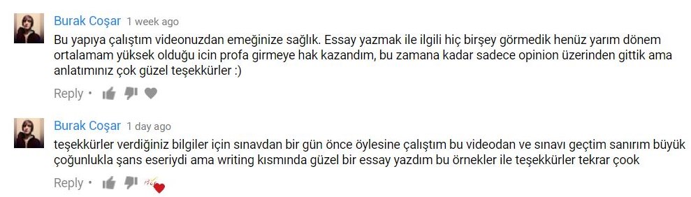 Bazense hiç tanımadığım öğrencilerden teşekkür mesajları geliyor. Boğaziçi Proficiency Essay yazma üzerine hazırlamış olduğum eğitim videosunu izleyen Bahçeşehirli bir öğrenci hazırlık sınavını geçmiş sonra da şunları yazmış. Burak Bey demiş ki: